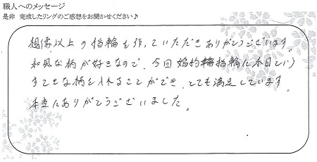 他所のブランドさんにはない特徴のあるこのリングを大事に使っていきます。