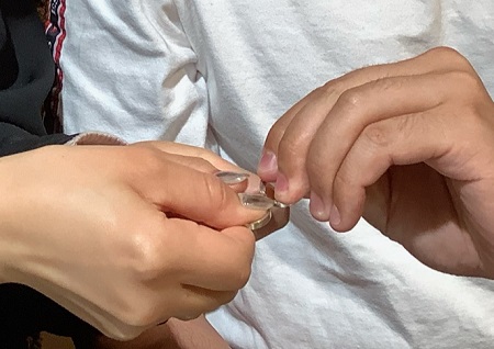 素材を選ぶ所からていねいに教えてもらい、2人で作ったと言うよりお店と3人で作ったリングだなって思いました。