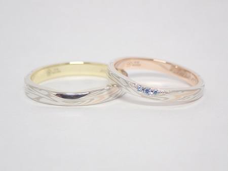 結婚指輪(マリッジリング)の木目金素材:ホワイトゴールド×ピンクゴールド×シルバー