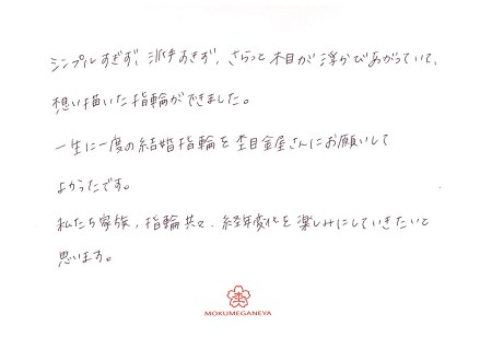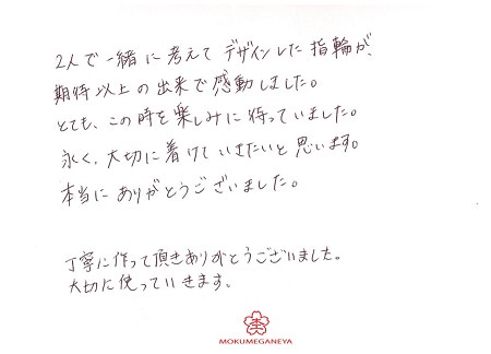 思い通りのリングが完成しました。愛知県 N.K様 S.K様(お渡し担当:堂森)