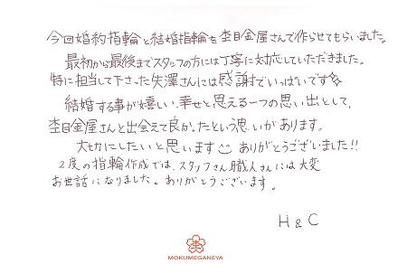 素敵な結婚指輪をありがとうございました。
