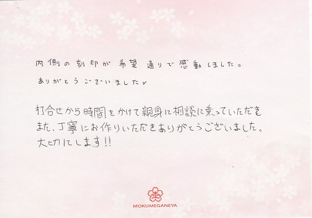 毎日身につけて、一生大切にさせていただきます 愛知県 S.S様 S.M様(お渡し担当:村田)