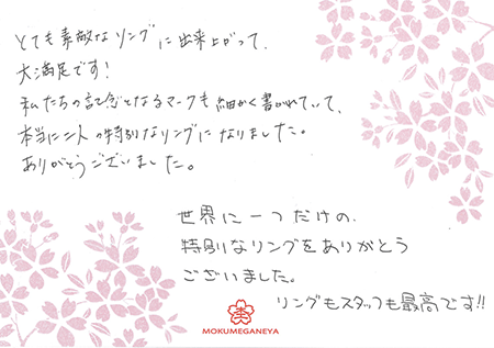 日本文化と桜が大好きな私にとって最高のリングになりました 愛知県 M.G様 A.M様 (お渡し担当:中村)