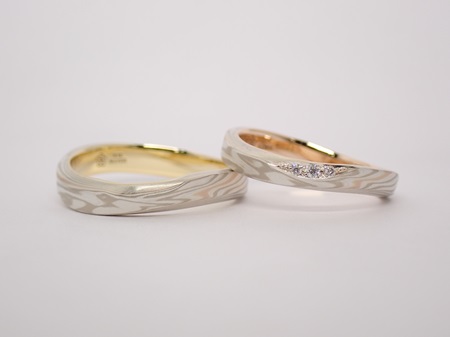 結婚指輪(マリッジリング)の木目金素材:ホワイトゴールド×ピンクゴールド×シルバー