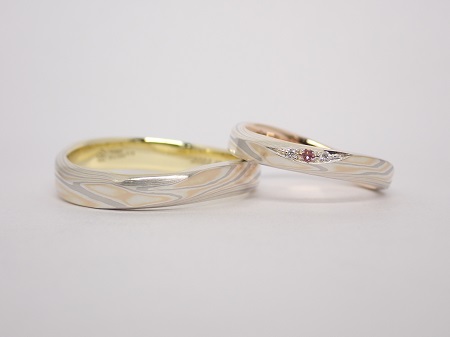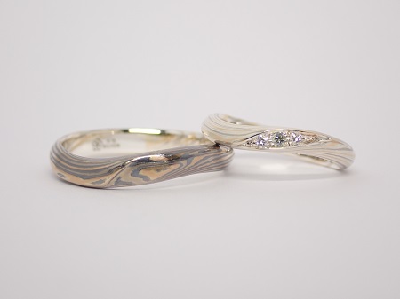 結婚指輪(マリッジリング)の木目金素材:ホワイトゴールド×ピンクゴールド×シルバー