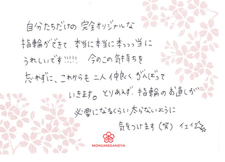 木目金の結婚指輪をオーダーメイドいただきました 愛知県 K.I様 Y.I様(お渡し担当:三谷)
