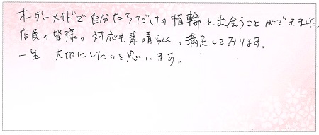 一生大切につけていきます! 愛知県 N.H様 K.K様 (お渡し担当:松井)