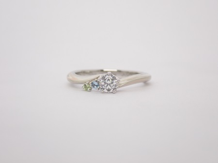 宝石・誕生石(右):タンザナイト(中央)、クリアダイヤモンド(左右)