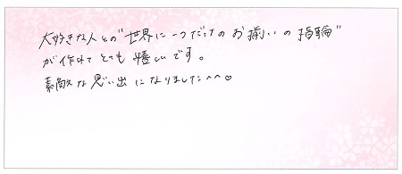すごく素敵な、指輪を作っていただき、ありがとうございます。 大阪府 Y.M様 (お渡し担当:森本)