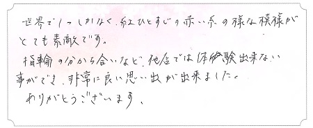 2人でしたセレモニーも大切な思い出になりました。 奈良県 H.T様 M.S様 (お渡し担当:森本)