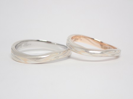 結婚指輪(マリッジリング)の木目金素材:プラチナ×ピンクゴールド×シルバー