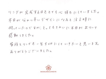 「MOKUMEGANEYA」でリングを選んで良かったです。
