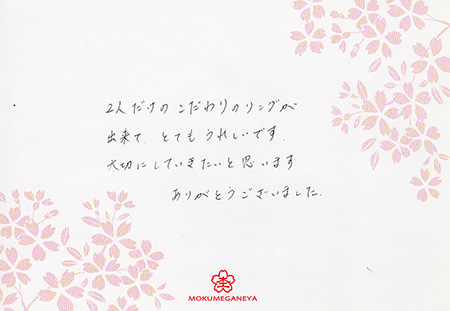 1つのリングを2人の手でわかちあって出来たリングは良い思い出になりました。
