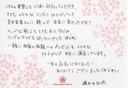 予想以上にきれいな指輪を作って頂き、感激です!!