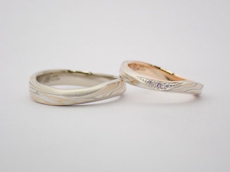 結婚指輪(マリッジリング)の木目金素材:ホワイトゴールド×ピンクゴールド×シルバー