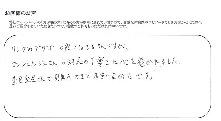 大切に身に付けていきたいと思います。神奈川県 T.I様 K.I様(お渡し担当:葛原)