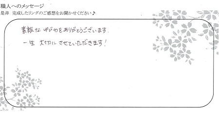 また、婚約指輪につけていただいた桜の花びらには本当に丁寧につくっていただけたことを感じました。