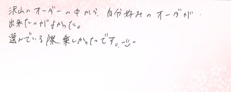 注文日とセレモニー日は私たちにとって一生の思い出です。大阪府 H.W様 (お渡し担当:小幅)
