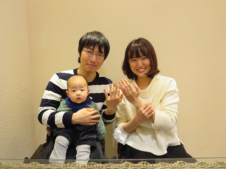 美しく流れるような木目、指輪の内側の文字入れ等々、私達がイメージしていた指輪、または、それ以上の指輪になりました。 千葉県 武弘様 瑠衣様(お渡し担当:大石)