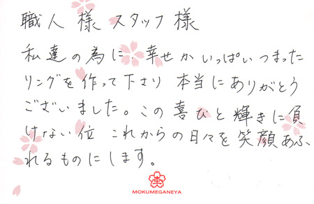木目金の婚約指輪をオーダーメイドいただきました M.S様 M.W様(お渡し担当:矢部)