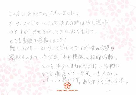 木目金の婚約指輪をオーダーメイドいただきました M.S様 M.W様