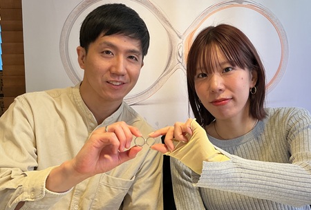 他には無い指輪で、同じ素材から作られる事、そして、わかちあうセレモニーで思い出が1つ作れる事もあり、杢目金屋を選びました! 埼玉県 R.O様 A.O様