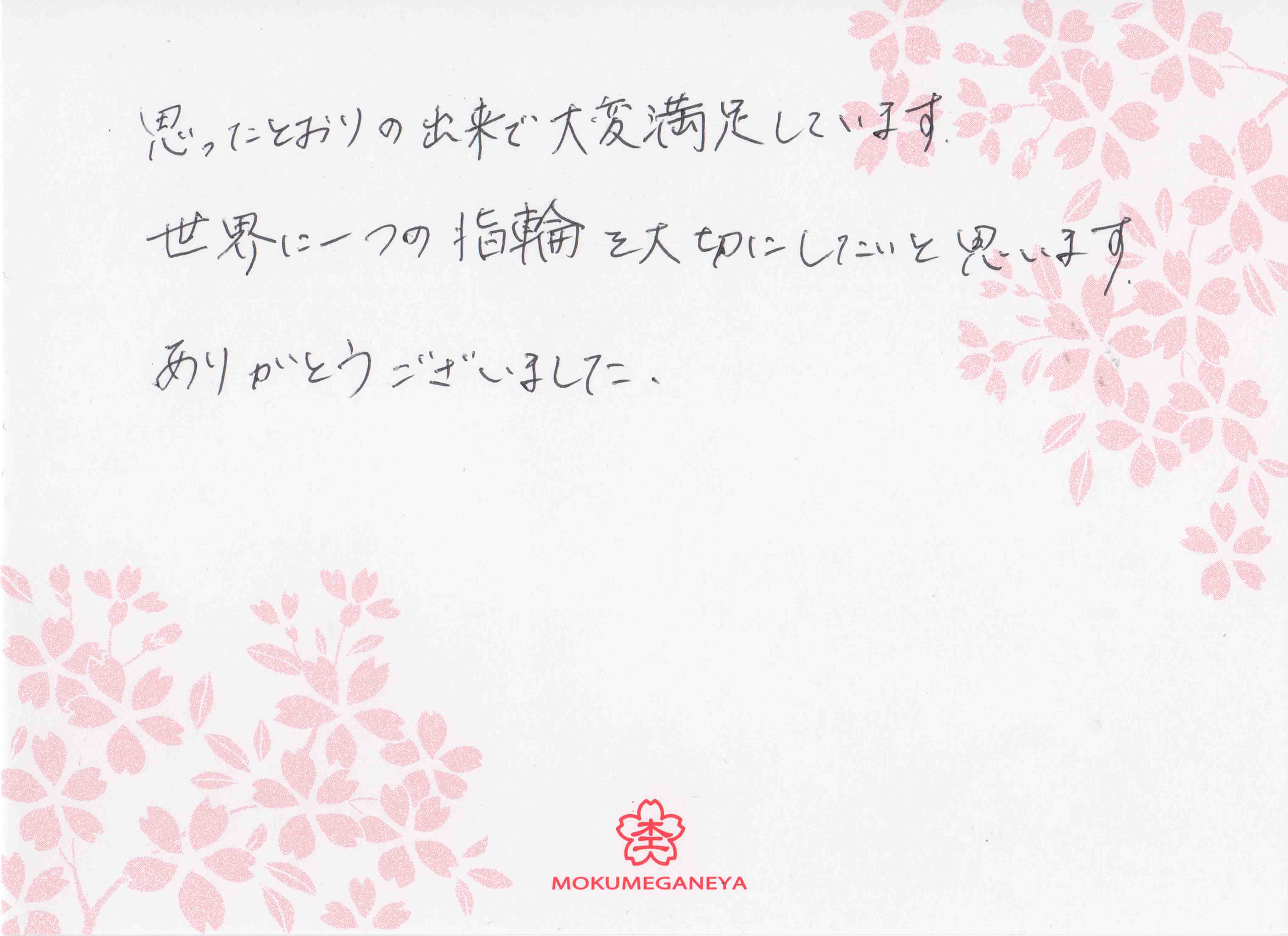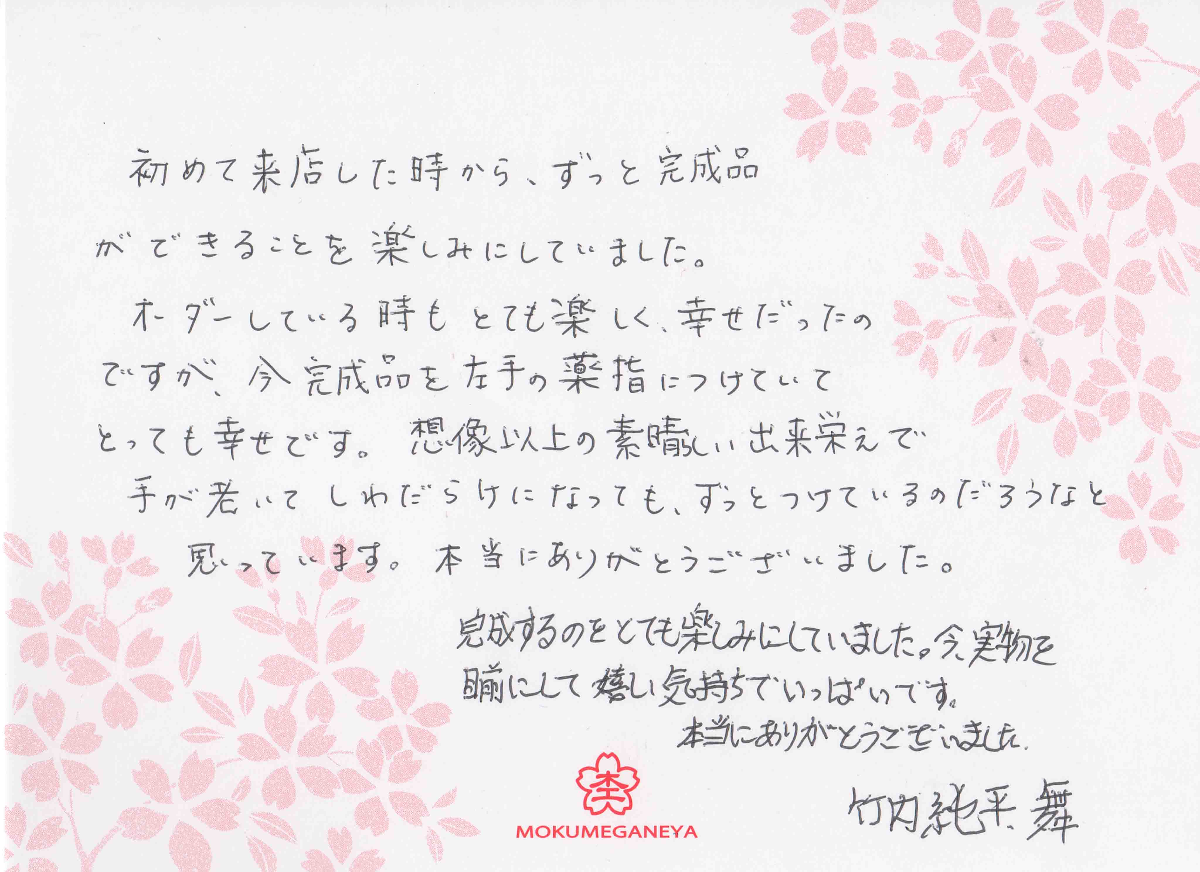 この度は、指輪をつくって下さり誠にありがとうございました。