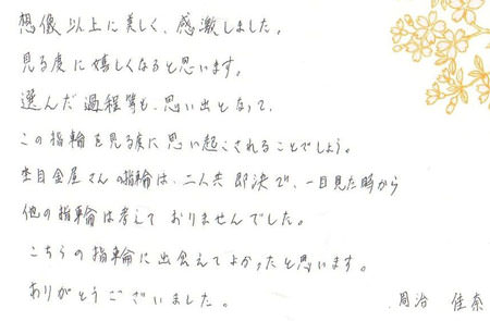 日本文化を大切にして作られたリング、出来上がりをとても楽しみにしていました。