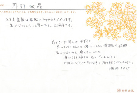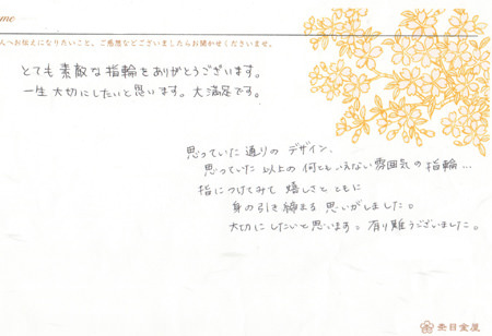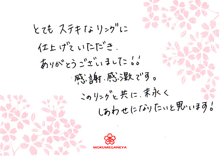 短い期間で本当に素敵な指輪を作って頂きありがとうございます。