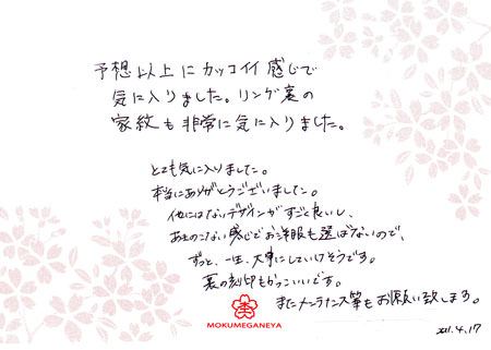 素敵なリングを作って頂きありがとうございました。