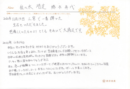 木目金の婚約指輪をオーダーいただきました 兵庫県 亀野誠二様 (お渡し担当:前田)