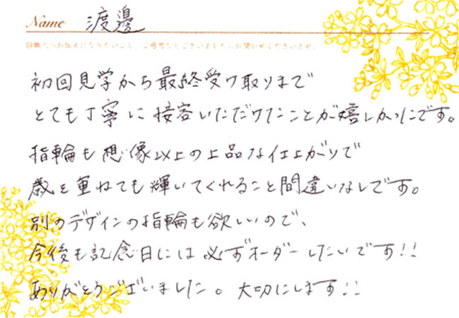 「木目金の結婚指輪をオーダーいただきました 神奈川県 渡邊様 (お渡し担当:柳瀬)