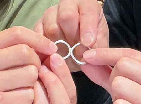 わかちあうセレモニーで制作途中の指輪を実際に触れ、