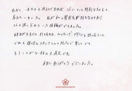 一生大切にします。 T.S様 M.S様 兵庫県 (お渡し担当:中野)