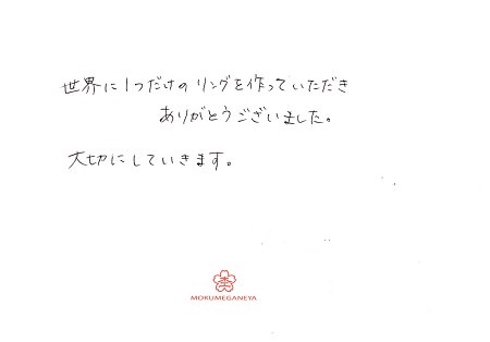 世界に1つだけのリングを作っていただきありがとうございました。神奈川県 T.T様 M.M様(お渡し担当:谷口)
