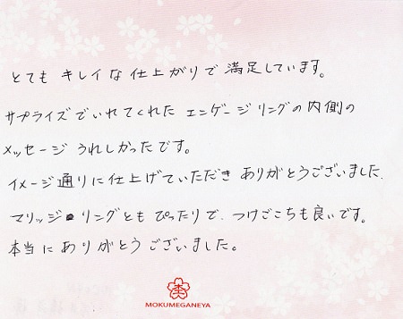 素敵な指輪を作って頂き、本当にありがとうございました!! 山口県 Y.K様 S.O様 (お渡し担当:瀧口)