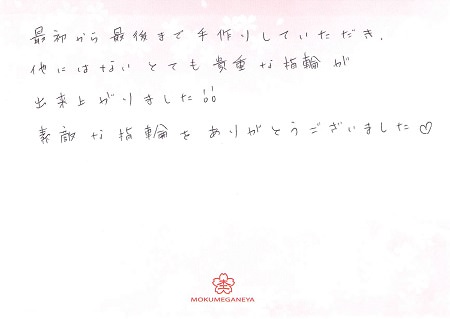 素敵な指輪をありがとうございました♡ 埼玉県 S様ご夫妻(お渡し担当:八巻)