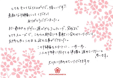 自信を持って一番素敵な指輪になりました 岡山県 T.T様 M.K様(お渡し担当:西村)