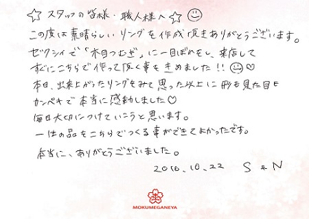素敵な指輪をありがとうございます♡ S.O様 N.K様 (お渡し担当:大野)