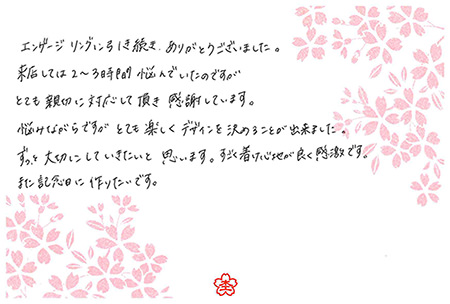 一生大切にしたいと思います 東京都S.M様 Y.H様 (お渡し担当:大野)
