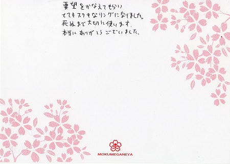 とても素敵なリングになりました 兵庫県 S.K様 M.K様 (お渡し担当:大田)