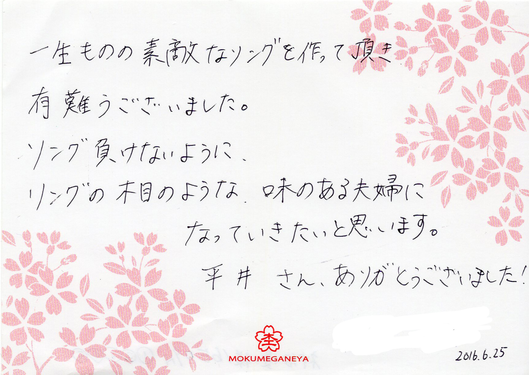 リング負けないようにな、味のある夫婦になっていきたいと思います。 愛知県 Y.K様 M.O様(お渡し担当:平井)