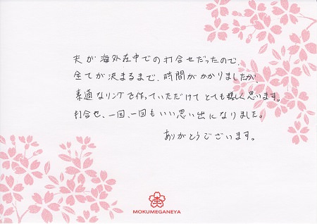 理想の素敵な指輪です。 山形県 S.Y様 E.Y様 (お渡し担当:布田)