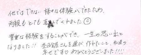 一生に一度の素敵な思い出ができました。