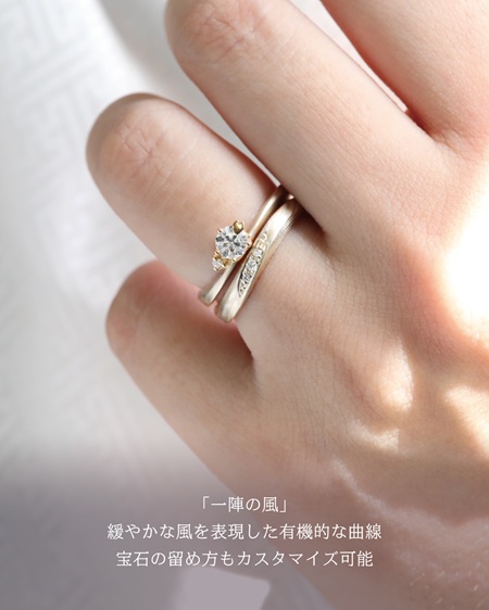 「恋風」は緩やかな風を表現したウェーブの形状のリングでございます。