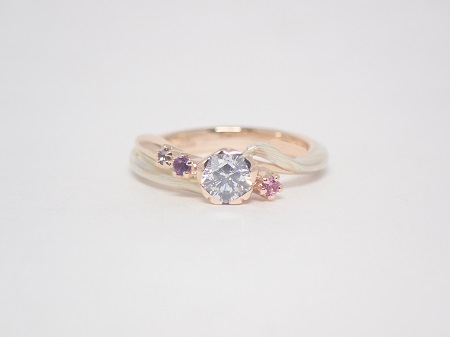 メインのダイヤモンドには、さくらダイヤモンドをお選びいただき、お手元で桜が満開になる指輪にしていただきました。