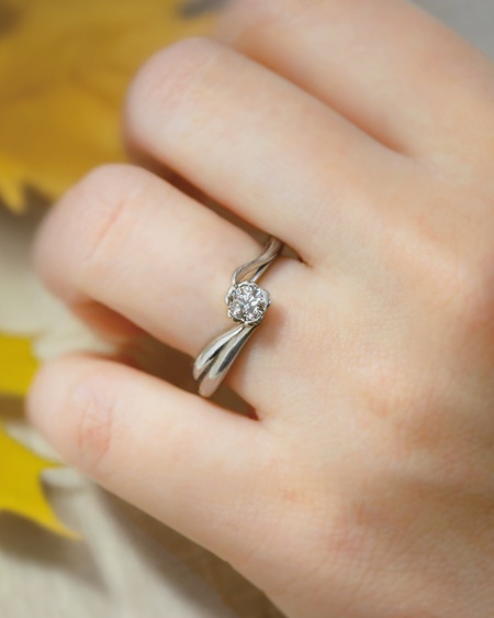 本日はご婚約指輪の「桜一輪」のデザインをご購入いただいたお客様のご紹介でございます。