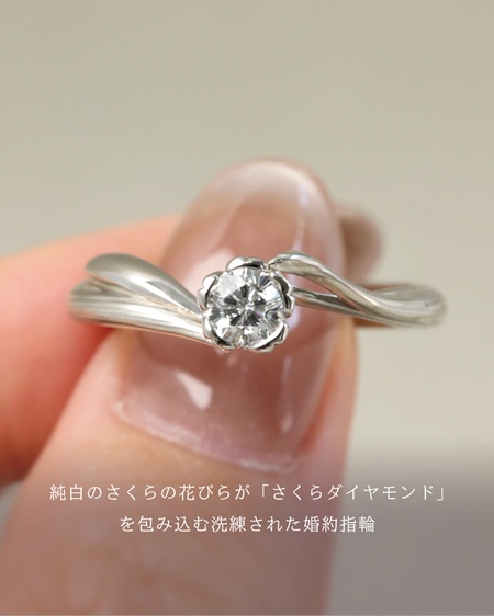 メインの宝石はさくらダイヤモンドできらきらと細かく光るグレードも、