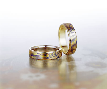 杢目金屋のリングも様々な色味の金属を使う事で美しい木目模様を作り出しています。