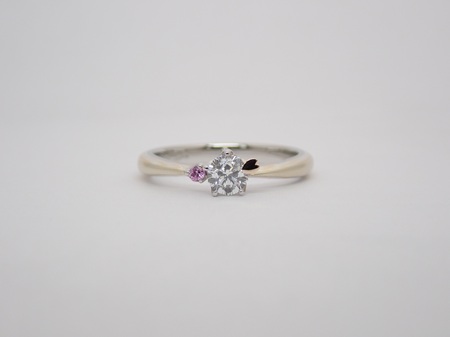 ダイヤモンドの中央に桜が浮かび上がる、女性様への想いがこもった運命の1石です。